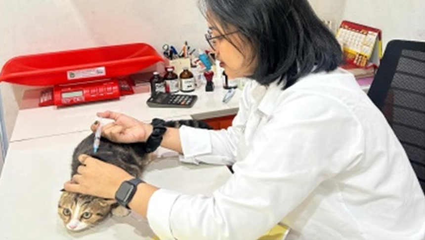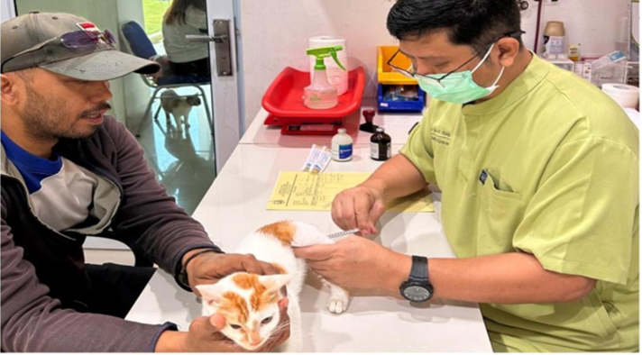 Pemberian vaksin pada kucing untuk mencegah penyakit menular dan meningkatkan daya tahan tubuh.