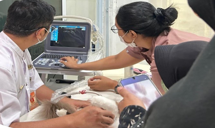 Layanan pemeriksaan kebuntingan hewan menggunakan teknologi ultrasonografi (USG) untuk memantau kondisi reproduksi dan perkembangan janin.