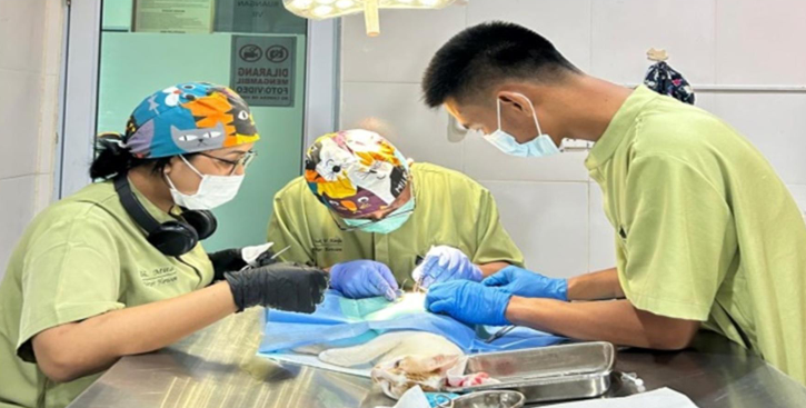 Tindakan bedah untuk hewan peliharaan kecil, seperti sterilisasi, pengangkatan tumor, atau operasi lain sesuai kebutuhan medis.